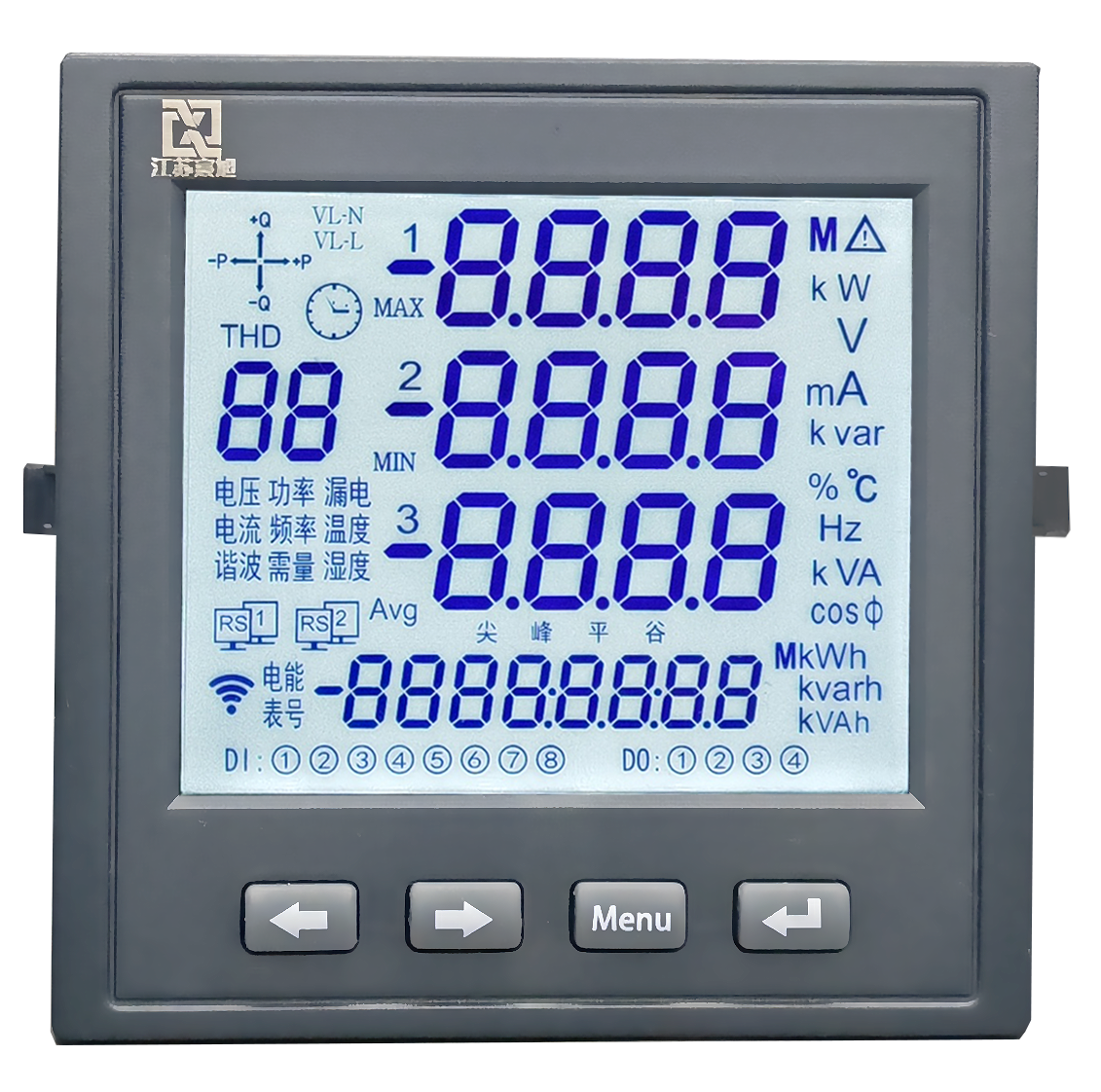 三相电压、电流、有功功率、无功功率、频率、功率因数、有功电能、无功电能、