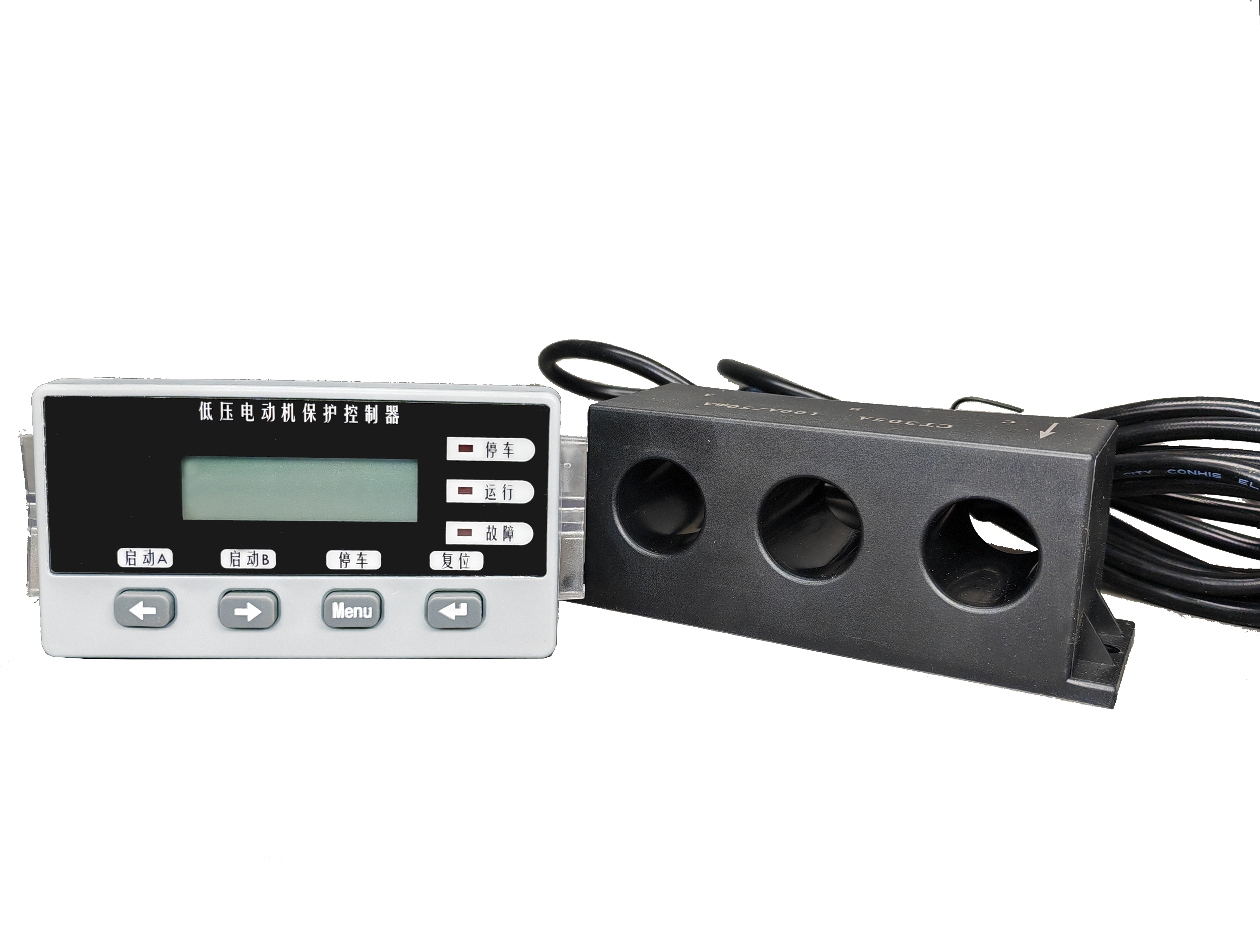 | 一体式电动机保护器 (LCD) | CHXM-330 | AC380V/AV660V可选,过流、堵转、断相、三相电流不平衡、过压、tE时间、欠压、欠功率、短路等故障保护,事件记录,带7路开入4路开出,测量电流、电压、功率、电能;RS485通讯;4~20mA模拟量输出 启动方式:保护模式、直接启动、正反启动、Y-△启动、自耦降压启动、远程自启动 选配:漏电带互感器、抗晃电模块/温度(两个只能选一个) | 开孔:67mm×67mm 电流:25A/100A/200A/300A/400A |