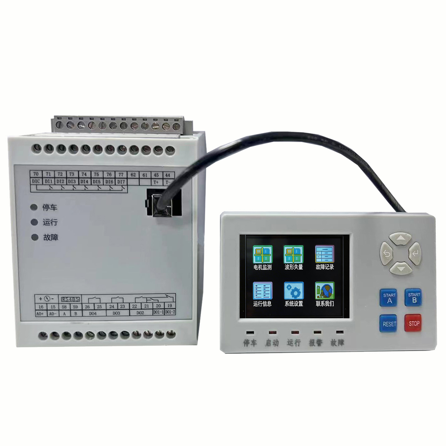 | 分体式电动机保护器 (LCD) | CHXM-510 | 显示和主体分开,AC380V/AV660V可选,启动超时、过载、过流堵转、断相、电流不平衡、接地、短路、欠载、过压、欠压、频率、欠功率因数、相序等保护功能, 抗晃电、故障记录,带7路开入4路开出 测量三相电流、接地/漏电电流、三相电流不平衡率、三相线电压、频率、功率因数、有功功率、无功功率、有功/无功电能计量,RS485通讯;4~20mA模拟量输出 启动方式:保护模式、直接启动模式、双向可逆启动模式、Y-△启动、自耦变压器启动、双速电机启动模式、线路保护模式 选配:漏电带互感器、温度(PTC/NTC) PROFIBUS-DP通讯、开关量扩展到10开入5开出 | 显示模块开孔:96.3mm×54.4mm 主体:导轨式安装 电流:25A/100A/200A/300A/400A |